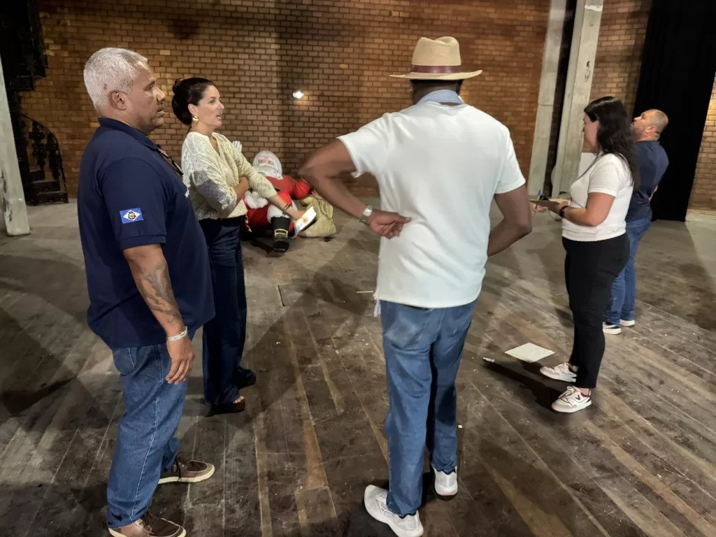 Participaram também da visita as arquitetas Natália Sing e Rachel Campos, responsáveis pelo projeto, e o diretor do Teatro Municipal, Ítalo Moreira, além de técnicos da Secretaria de Cultura.