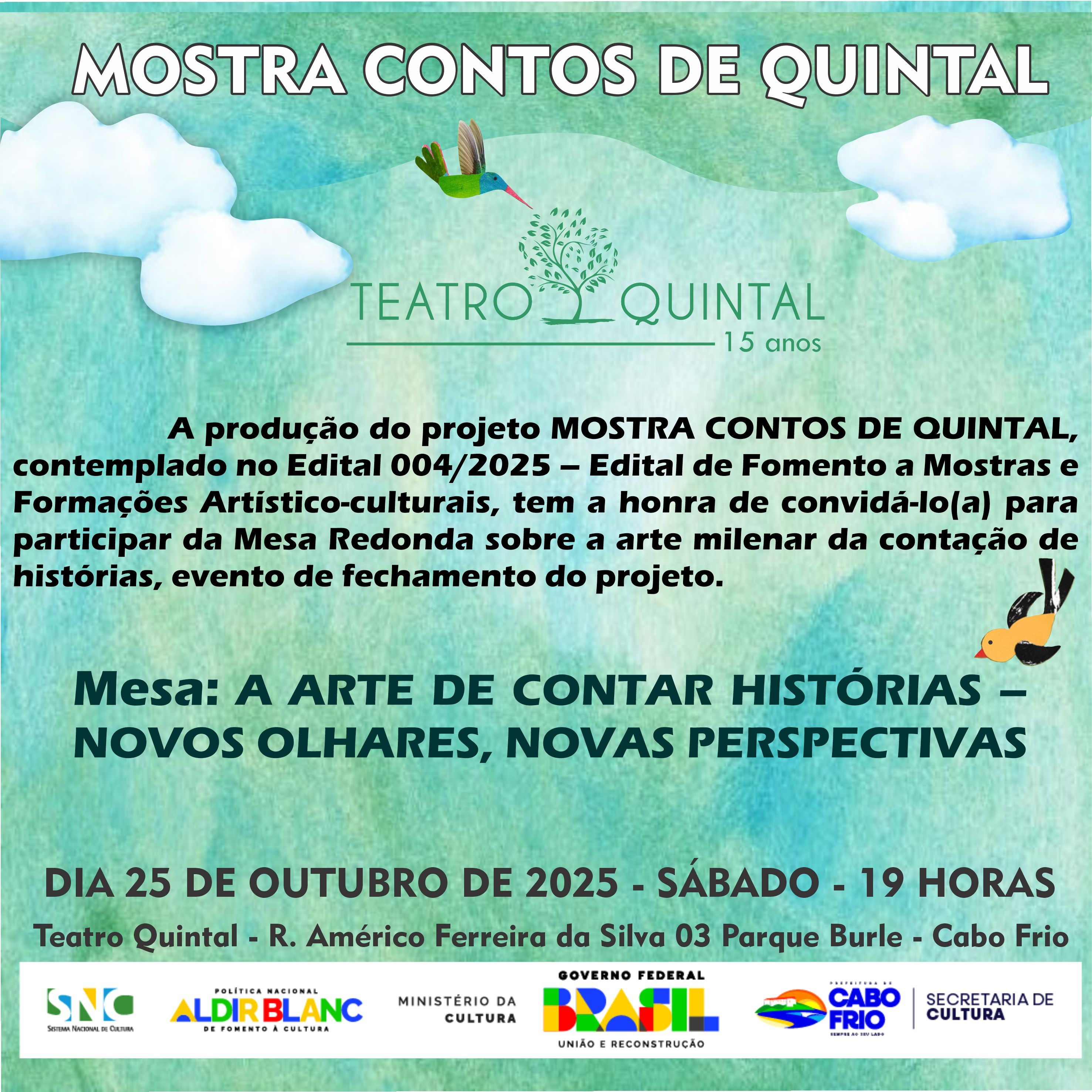 A “Mostra Contos de Quintal” reforça o compromisso de Cabo Frio com a promoção de uma cultura acessível, participativa e voltada à formação de novos públicos para as artes.