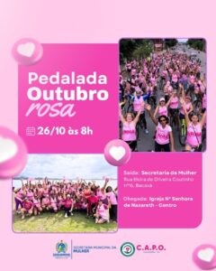 A Prefeitura de Saquarema, por meio da Secretaria Municipal da Mulher, promove neste domingo (26 de outubro) a tradicional Pedalada Outubro Rosa, iniciativa que une esporte, conscientização e mobilização social em prol da saúde feminina.