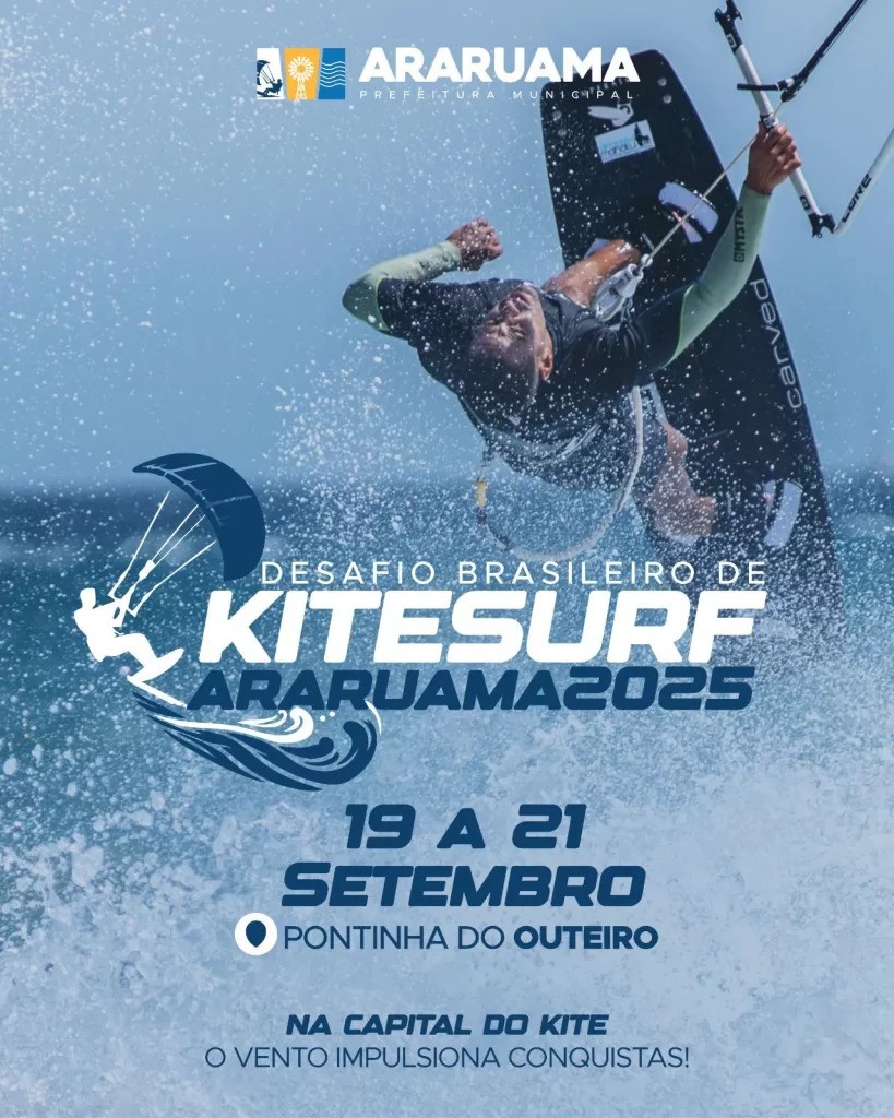 Acontece entre sexta-feira (19) e domingo (21) o Desafio Nacional de Kitesurf 2025, que será realizado na Praia Pontinha do Outeiro, em Araruama. A competição é organizada pela Confederação Brasileira de Vela e conta com apoio da Prefeitura.