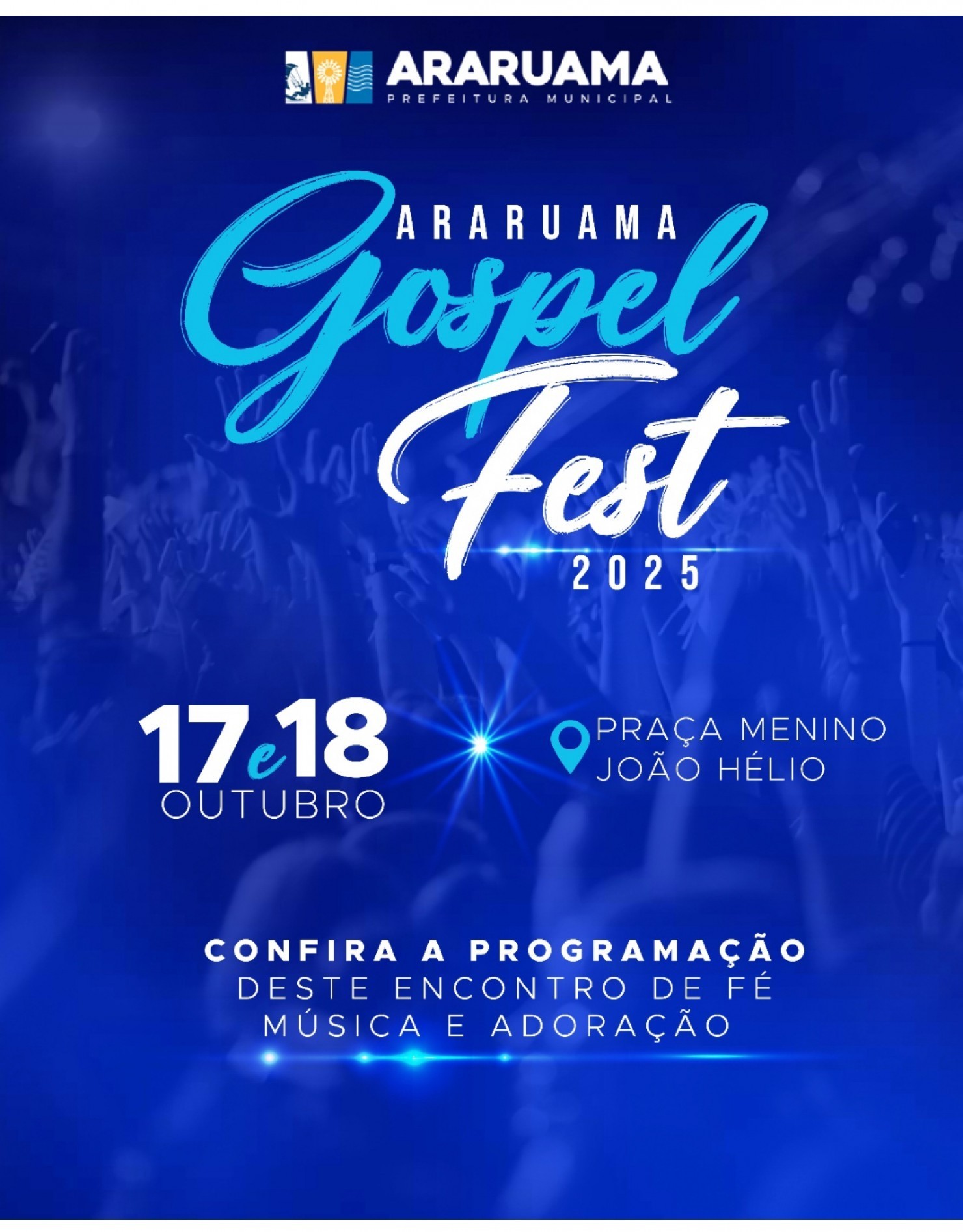 A Prefeitura de Araruama vai promover, nos dias 17 e 18 de outubro, o Araruama Gospel Fest 2025, um encontro de fé e música que promete marcar o calendário cultural da cidade. O evento será realizado na Praça Menino João Hélio, no Centro, com entrada gratuita