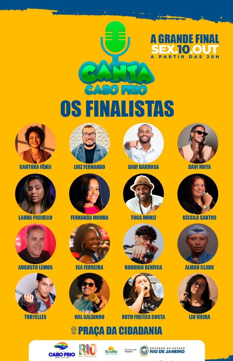 Neste ano, 16 finalistas disputam o título de grande vencedor do Canta Cabo Frio 2025, representando diversos estilos e bairros da cidade. O público poderá acompanhar de perto cada apresentação e vibrar junto com os talentos que fazem parte dessa história.