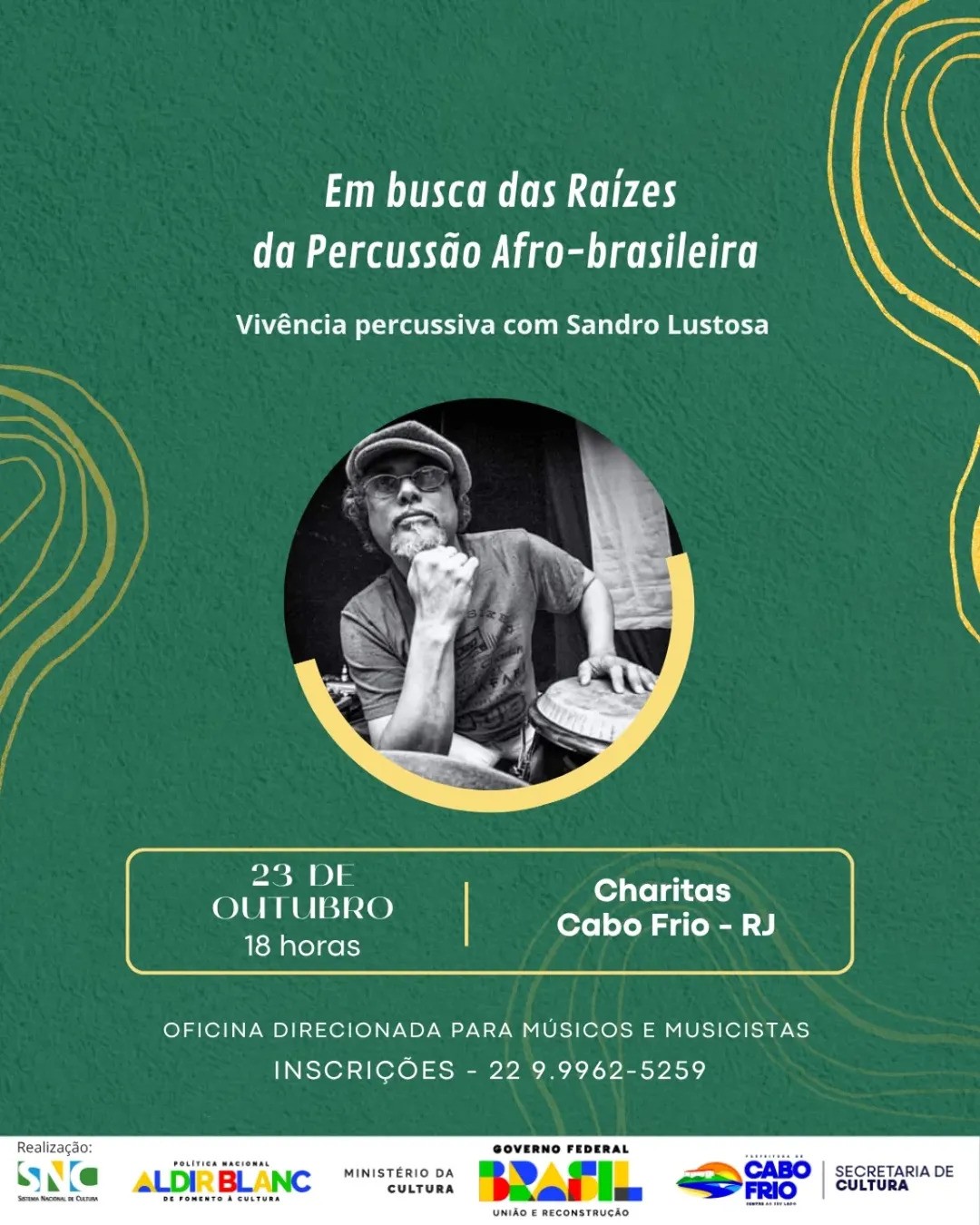 A comunidade cabofriense recebe, no dia 23 de outubro, uma oportunidade imperdível de vivenciar o universo da percussão brasileira. A Casa de Cultura José de Dome – Charitas será palco da oficina percussiva gratuita com o renomado percussionista Sandro Lustosa, referência nacional e internacional no instrumento.