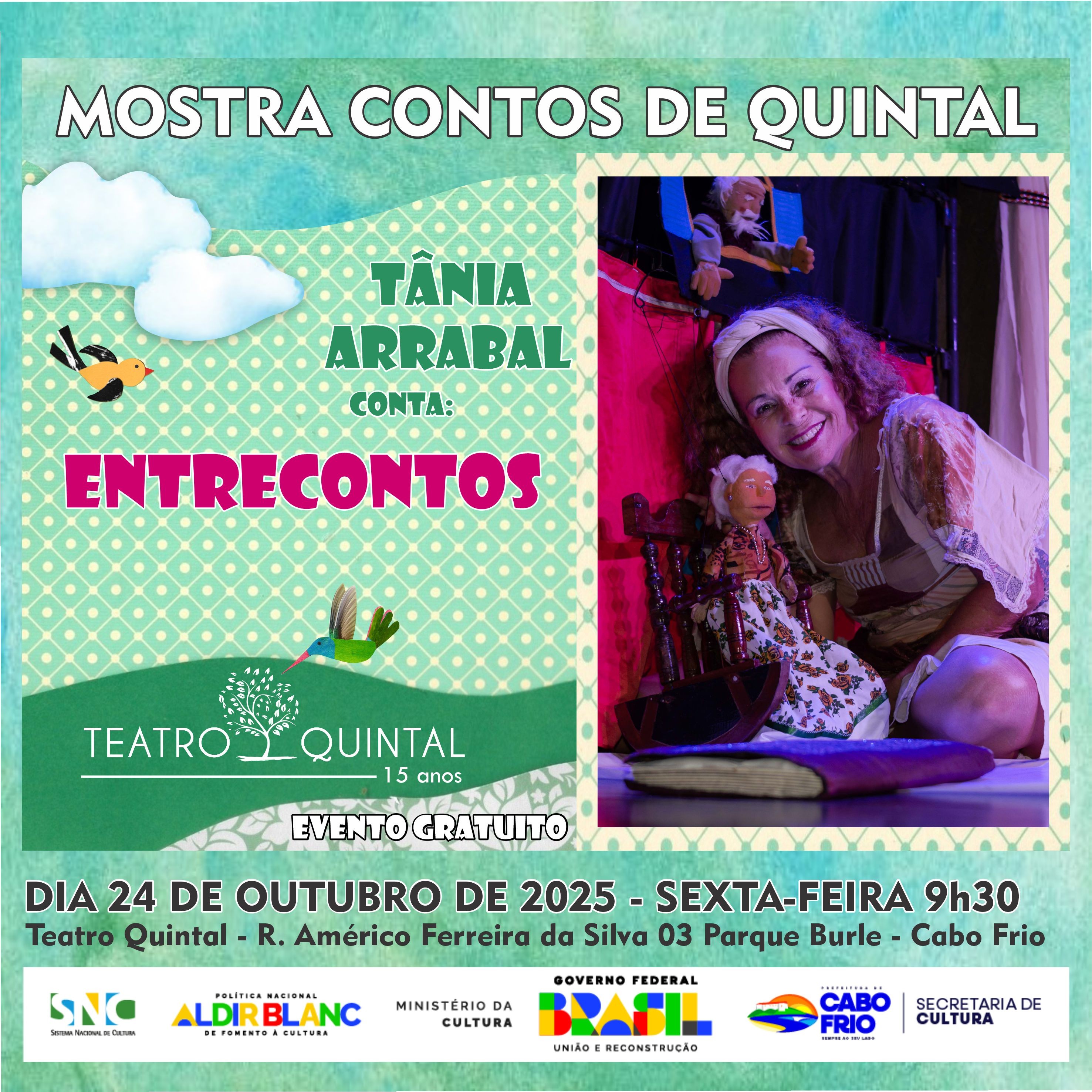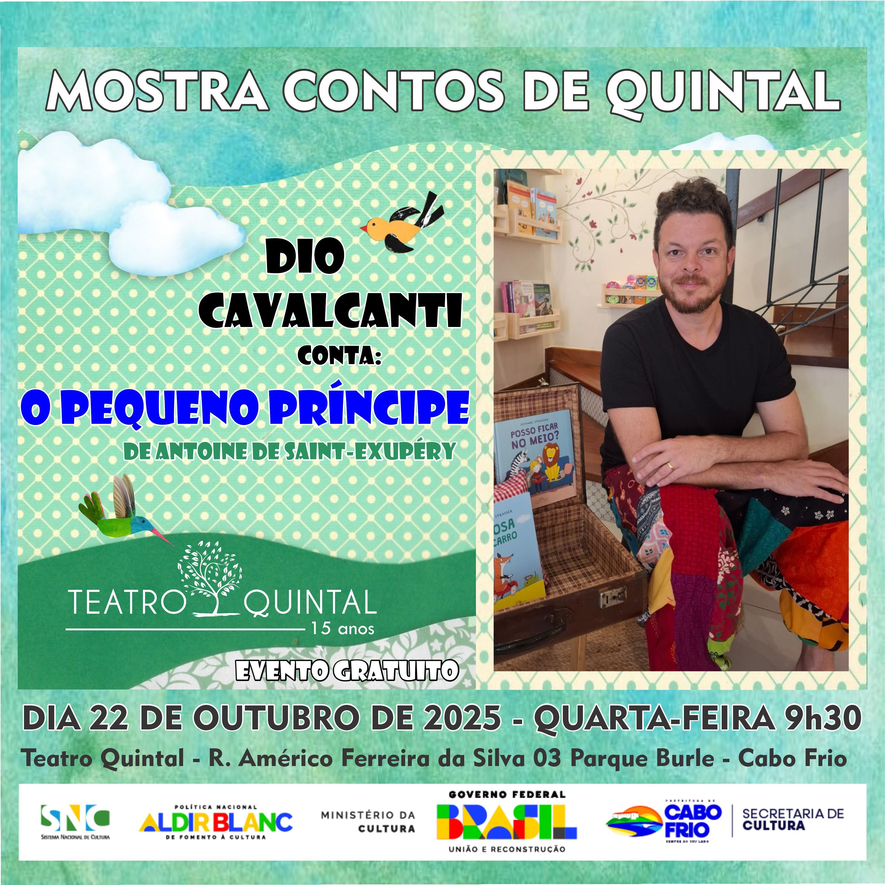 Local: Teatro Quintal – Rua Américo Ferreira da Silva, nº 03, Parque Burle, Cabo Frio