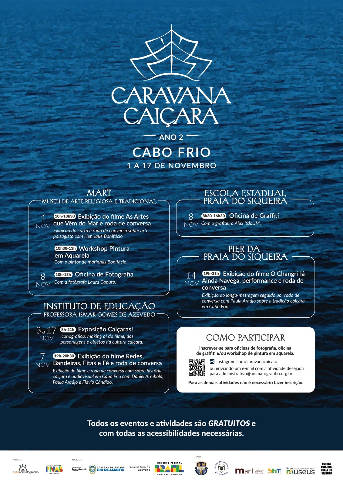Depois de passar por Arraial do Cabo e Saquarema, a Caravana chega a Cabo Frio, com programação distribuída entre o Museu MART, o Instituto de Educação, a Escola Estadual Praia do Siqueira e o Píer da Praia do Siqueira, sede da Colônia de Pescadores Z-4.