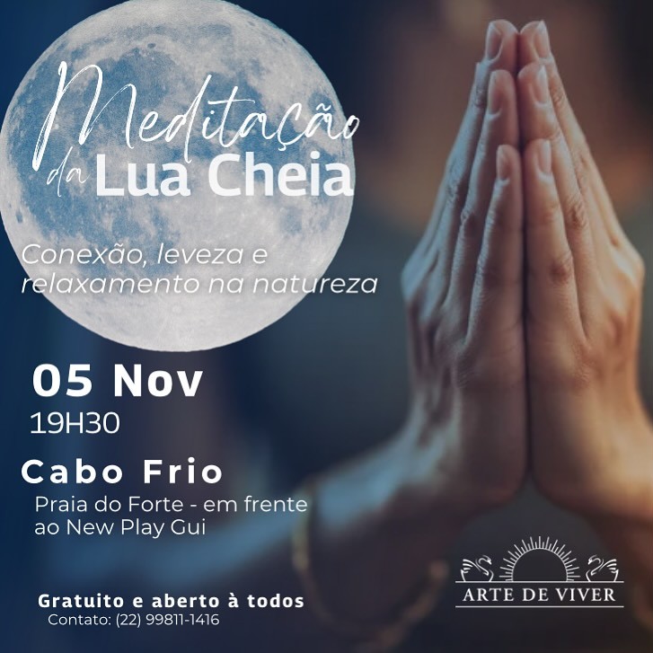Cabo Frio será palco da Meditação da Lua Cheia na próxima quarta-feira, dia 5 de novembro, na Praia do Forte. O encontro é aberto a todos que desejam vivenciar um momento de paz, equilíbrio e conexão interior. A meditação começará ás 19:30h.
