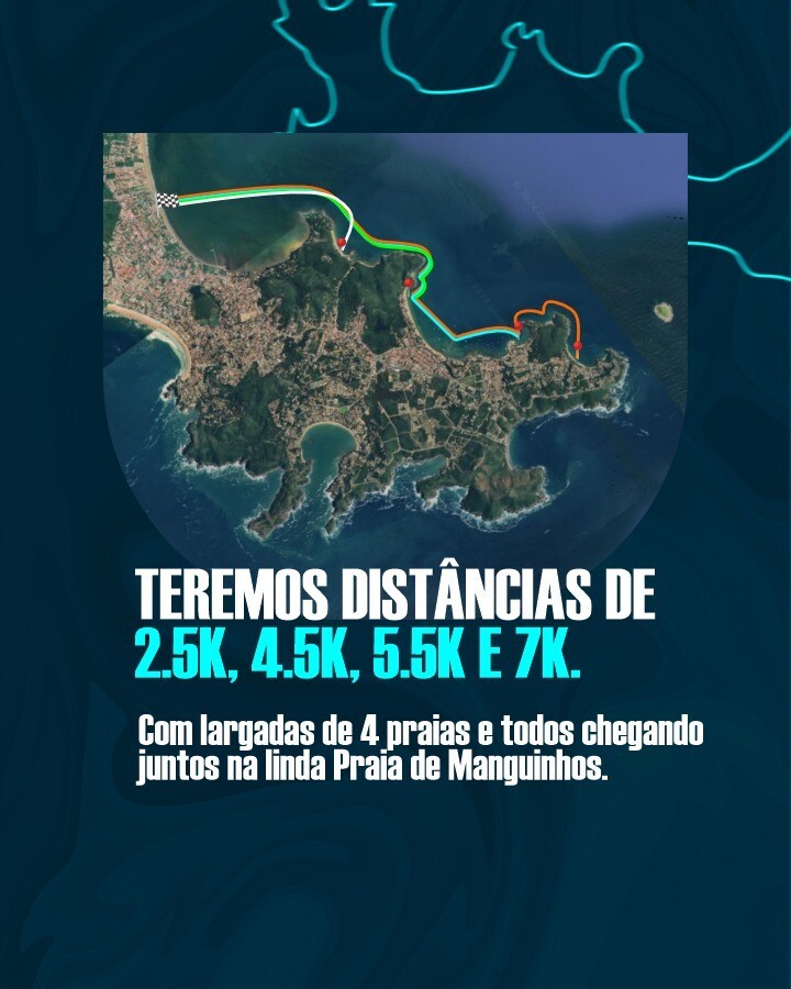 A prova terá quatro categorias de distância — 2,5 km, 4,5 km, 5,5 km e 7 km —, contemplando desde nadadores iniciantes até competidores experientes. O trajeto se estende da Praia de João Fernandes até a Praia de Manguinhos, passando por paisagens que destacam a beleza natural de Búzios e sua vocação para os esportes náuticos.