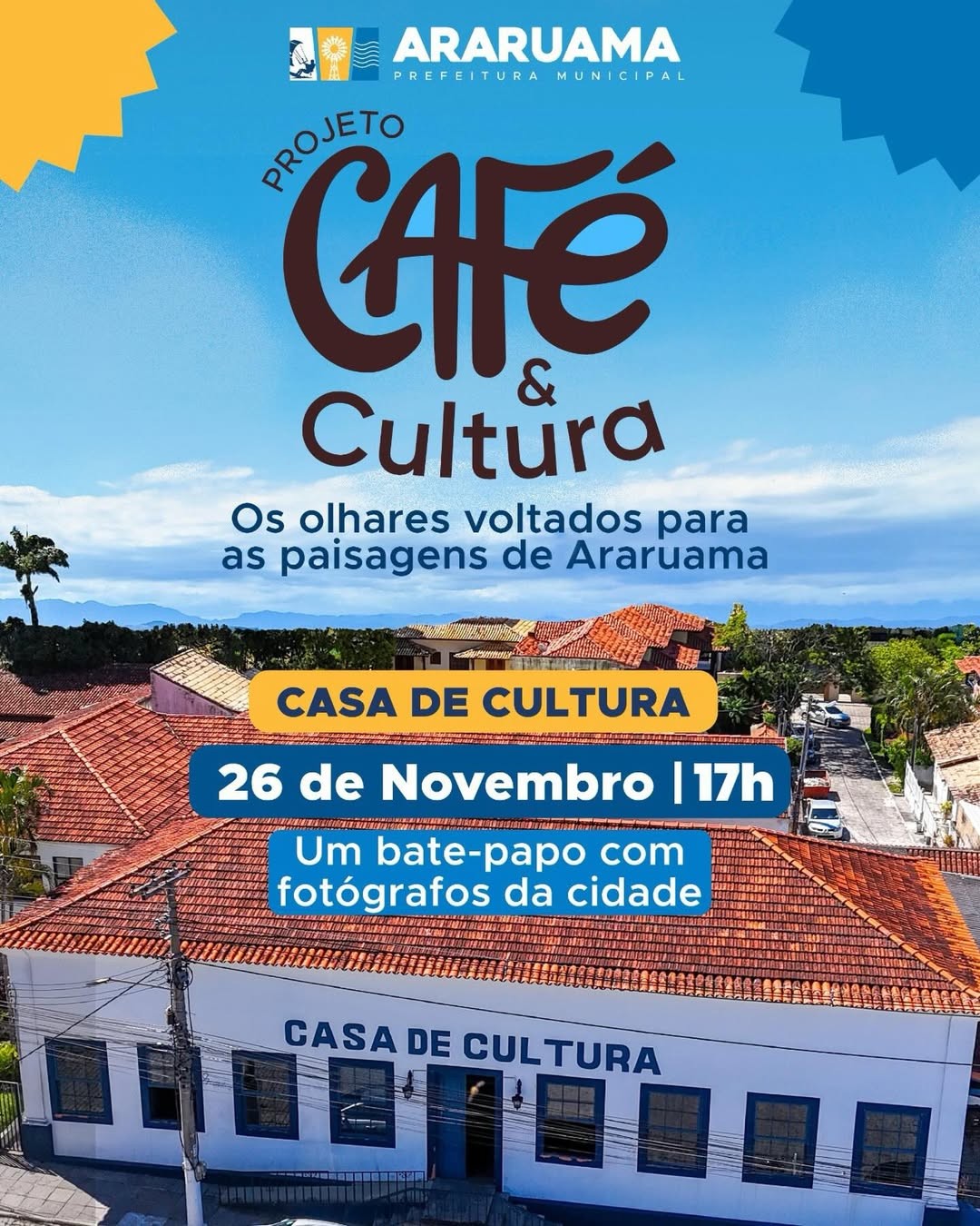 Voltado especialmente para fotógrafos e produtores culturais, o Café com Cultura busca incentivar a produção de imagens, fortalecer a identidade visual do município e aproximar a comunidade das diversas expressões culturais de Araruama. O evento é aberto ao público e gratuito.